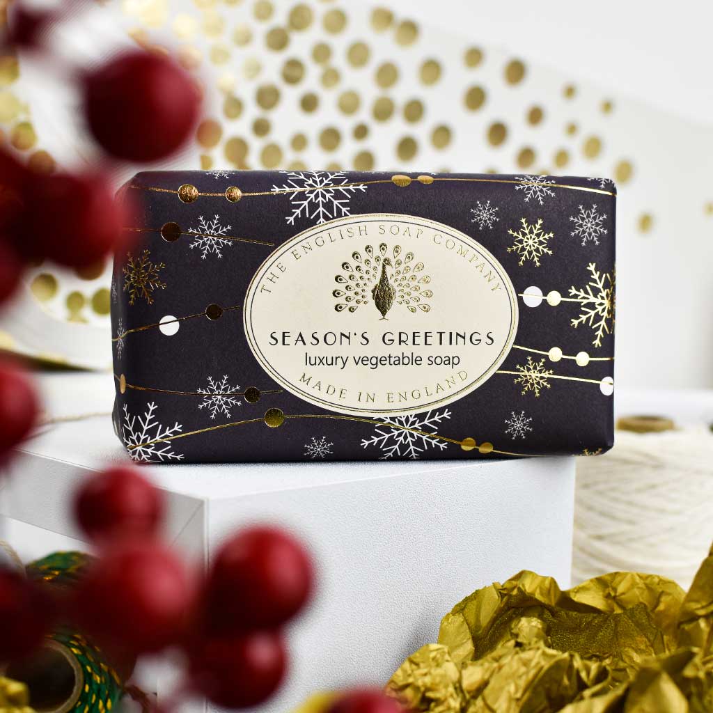 Experience luxury self-care with this Deck the Halls Christmas soap. Generously fragranced and expertly crafted from pure vegetable oils and enriched with shea butter, this vegan-friendly soap produces a rich, silky lather that scents and nourishes your skin. Presented in fully recyclable packaging with no plastic waste and adorned with charming illustrations, our eco-friendly soaps are the perfect gift or indulgent treat for yourself.