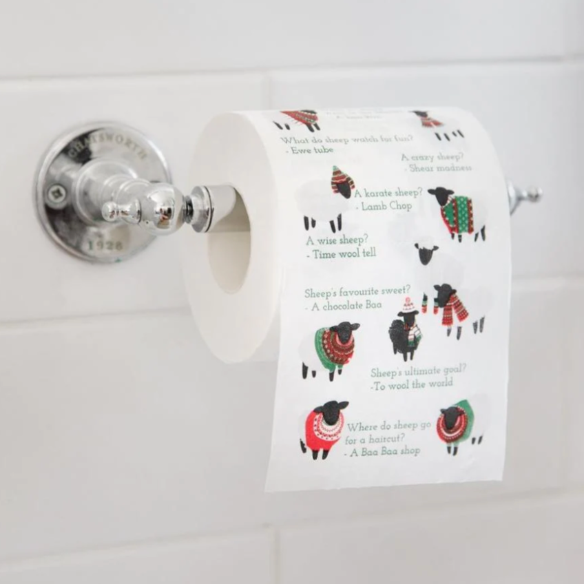 Previous NextFill your bathroom with laughter with this hilarious Sheep Toilet Roll! This fun festive loo roll features cute woolly sheep and sheep themed jokes that will have the whole family howling this festive season. A fun addition to your own home, funny Christmas gift or novelty stocking filler. Each box contains one roll.