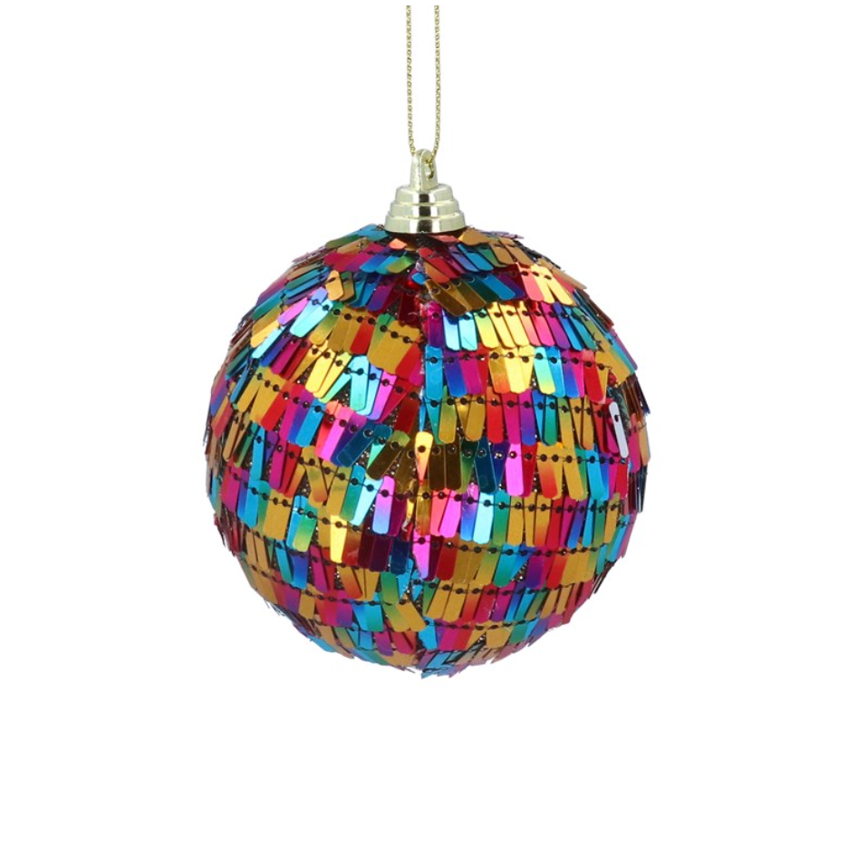 Add a splash of colour, sparkle and fun to your festive decorations with this unusual multicolour foil ball decoration.