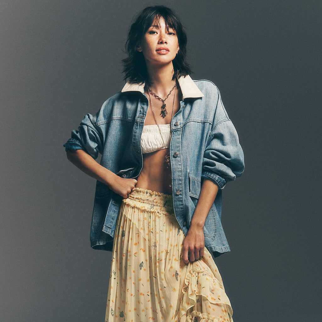 Effortlessly cool and undeniably versatile, the Free People Lemon oversized denim jacket from Free People delivers laid-back style with intentional design touches. The contrasting canvas collar and asymmetrical pockets add visual interest, while the relaxed fit and drop-shoulder sleeves create that coveted slouchy silhouette. Crafted from comfortable denim with button-front closure and cuffed sleeves, it's the ultimate go-to layer for everything from casual weekends to dressed-up moments. A timeless wardrobe essential that works harder than it looks.