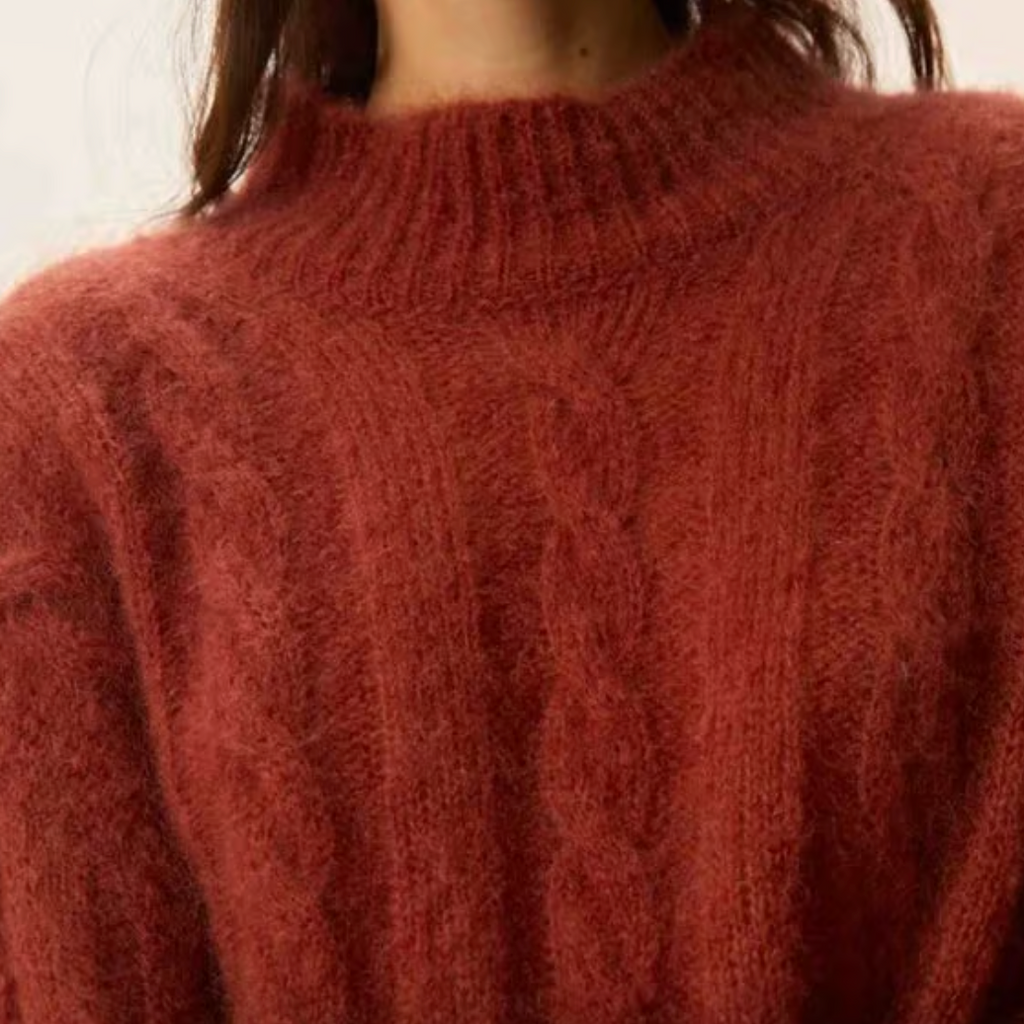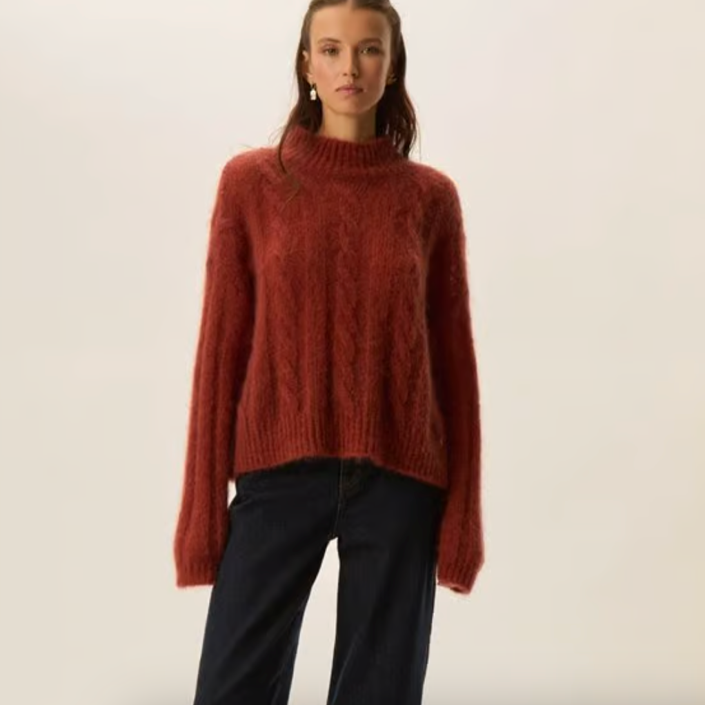 Previous NextThe Alonzo jumper from Des Petits Hauts is stunning in fox red mohair & wool mix, this knit really will elevate your autumn look. With its loose fit and high neck, it can be layered over a shirt or dress, and is the perfect addition to any outfit for a touch of class.