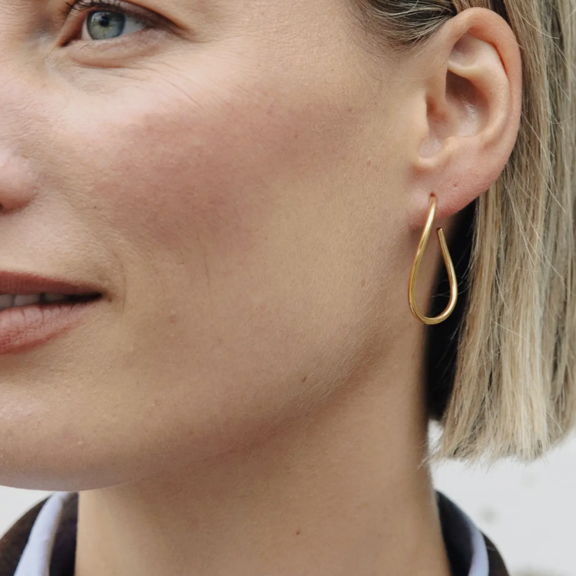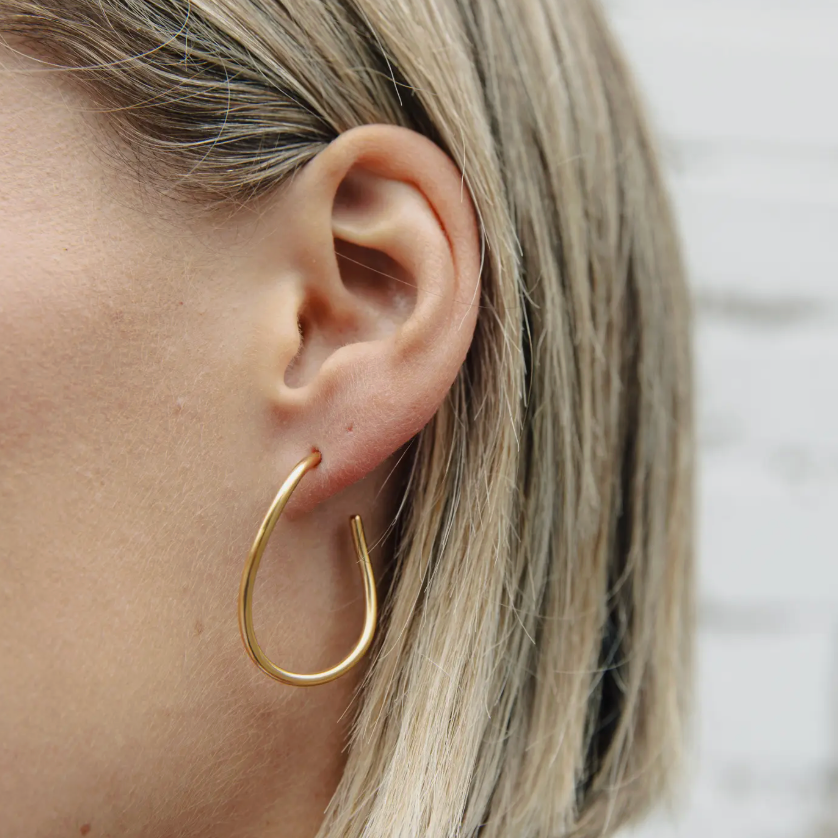 Nordic Muse Gold Oval Fluid Hoop Earrings, Waterproof