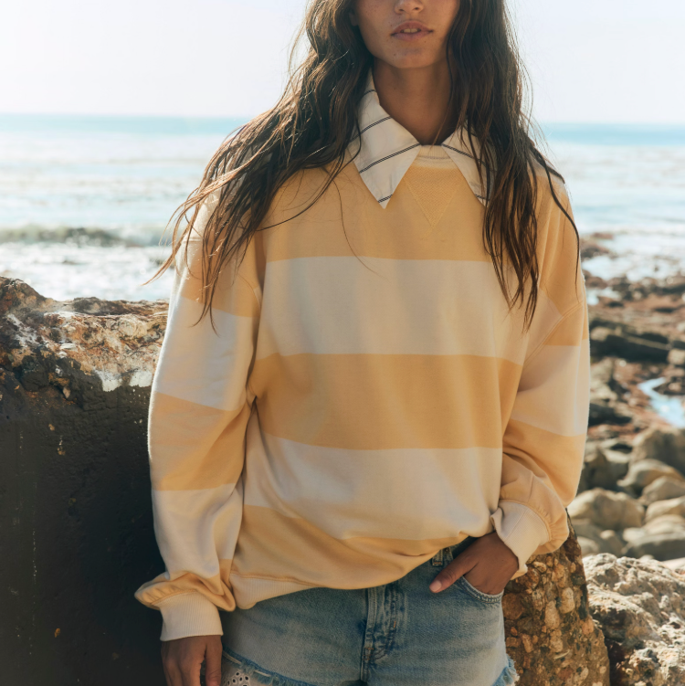 Free People Classic Striped Oversized Crewneck - Apricot Combo