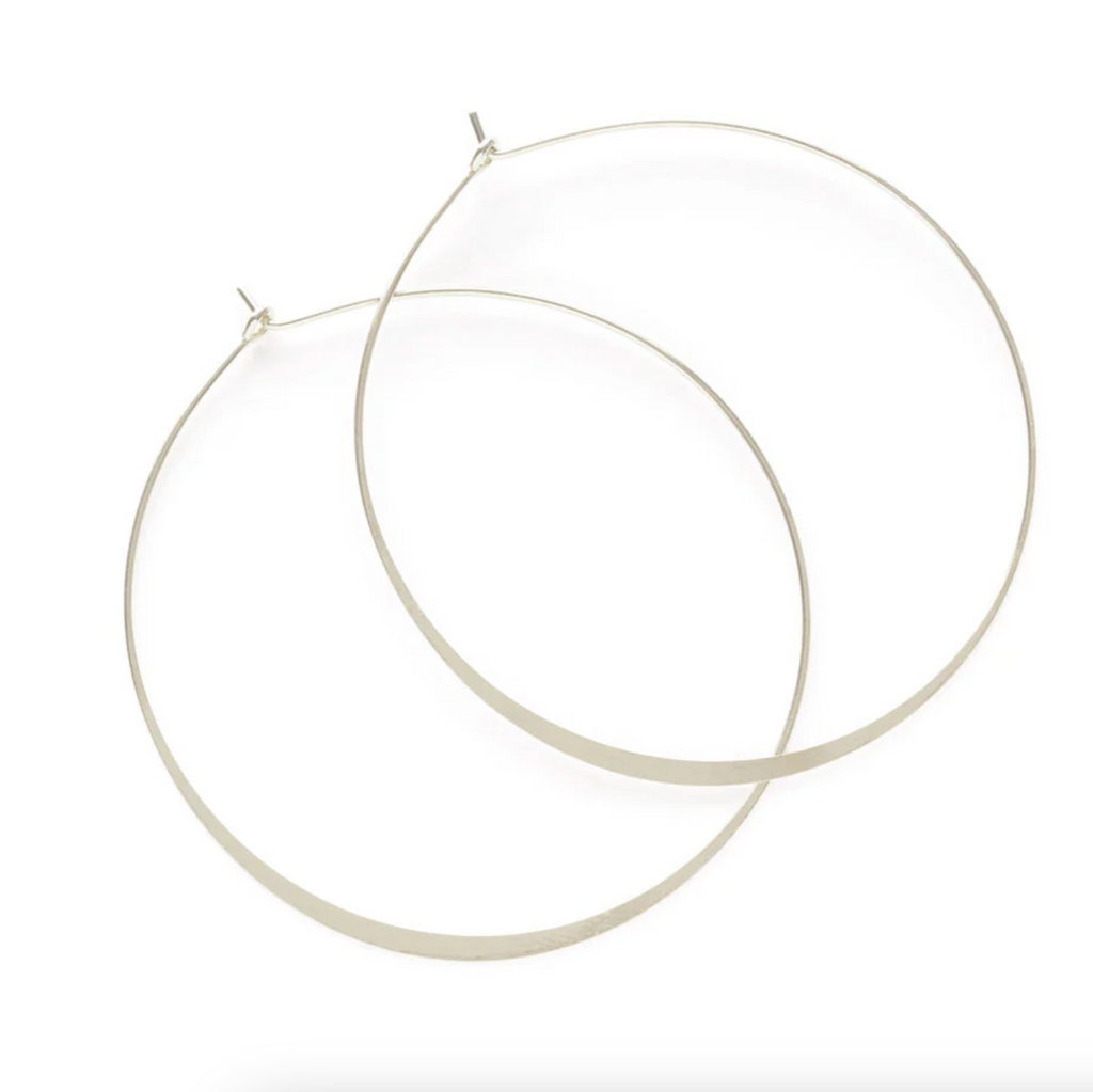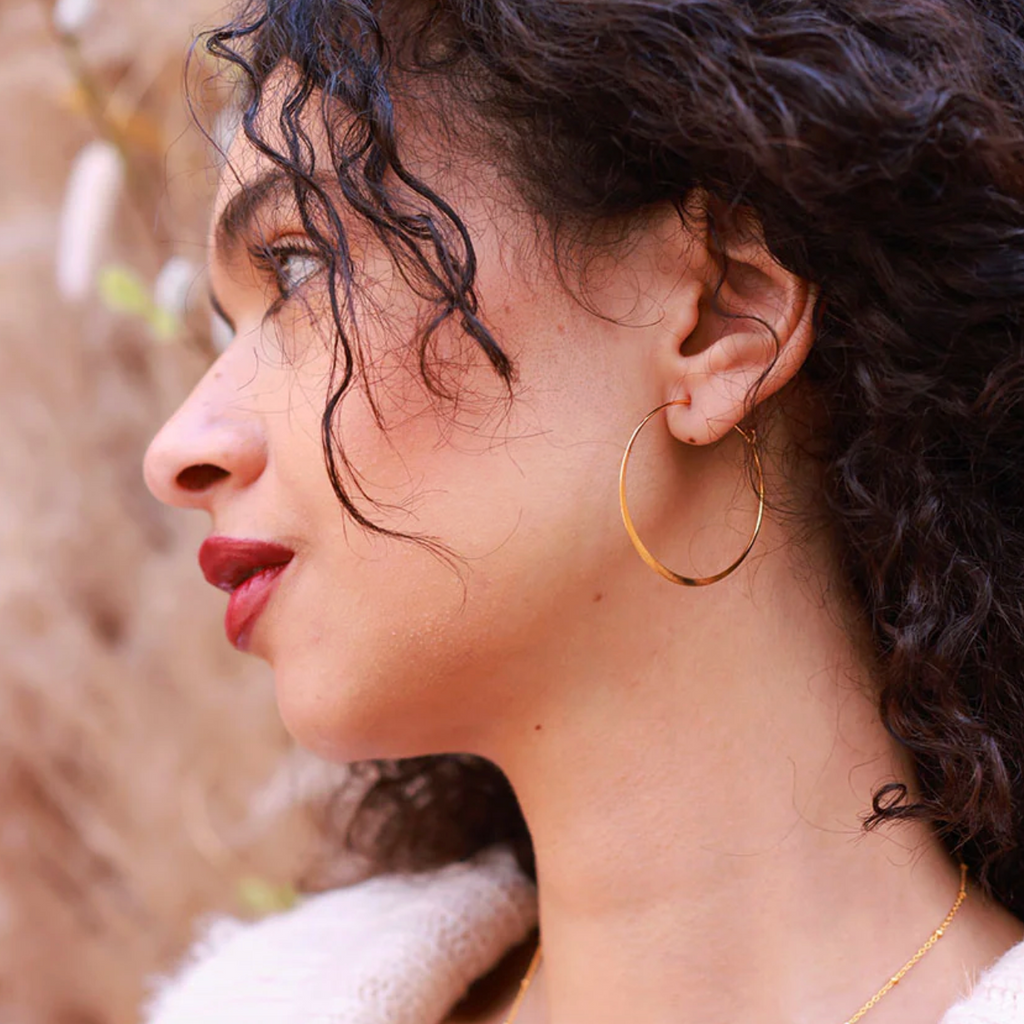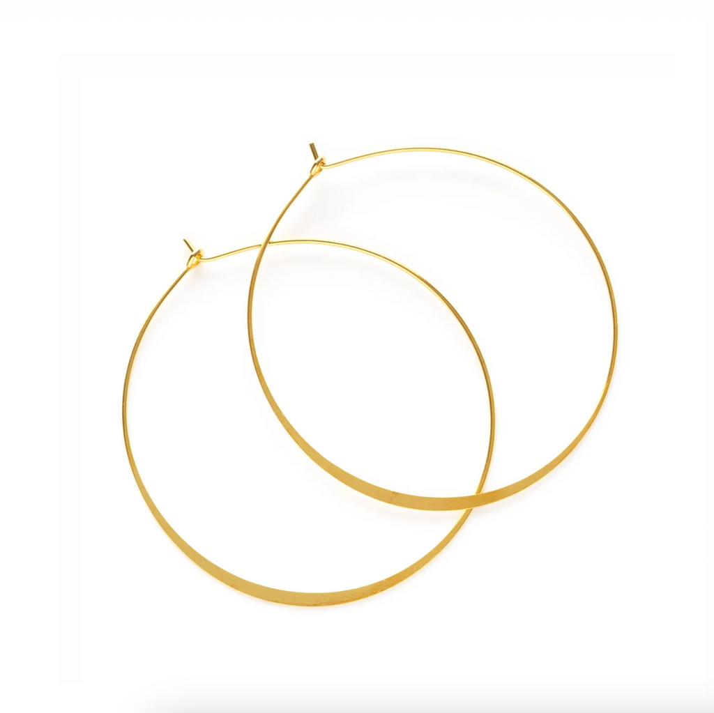 Previous NextEasy, everyday classics: 1.5" diameter hoop earrings. Plated in 24k gold or Sterling Silver and coated to resist tarnish and give a hypoallergenic surface that is good for even sensitive ears! Designed in our Sonoma California studio. Made in the USA.