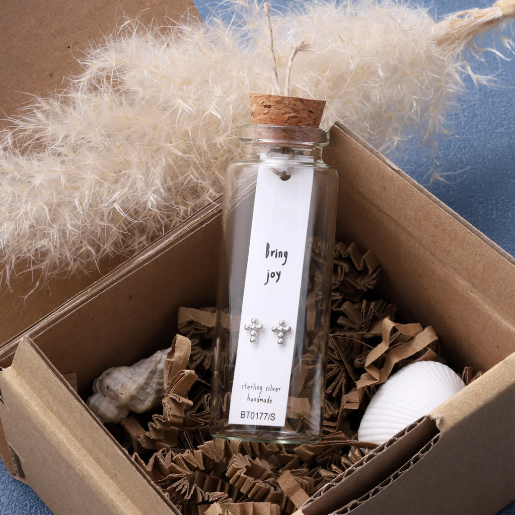 Attic Creations 'Bring Joy' Dotted Cross Earrings - Silver
