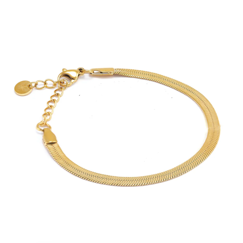 Love to wear simple jewellery? you need the Milan Snake Chain. This bracelet is perfect for dressing up or down. Wear on its own or layer with the Quinn bracelet.