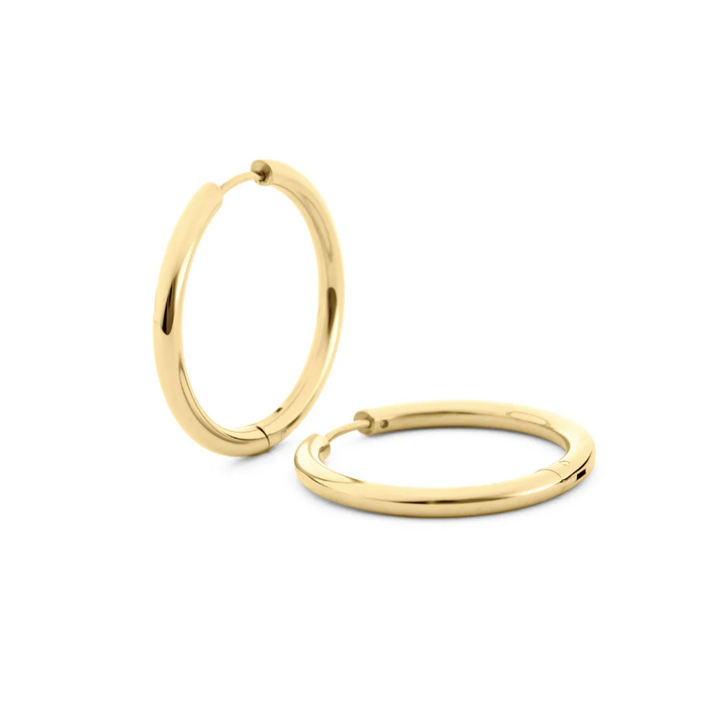 These hoops are 14k PVD gold plated, so slightly lighter in colour to our 18k gold pieces.