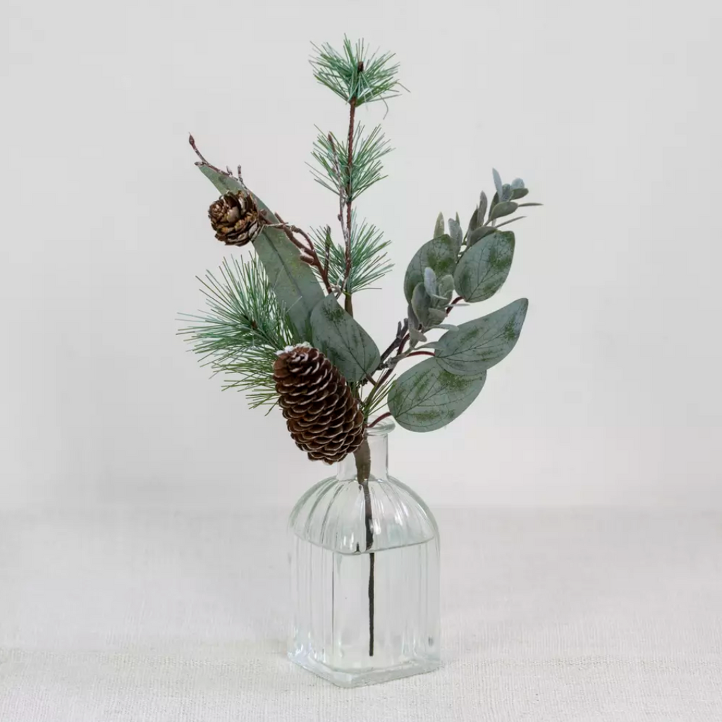Previous NextExperience a touch of Christmas with our 30cm sprig of festive foliage. This charming arrangement features a delightful mix of lifelike greenery and twigs, complete with real fir cones. It’s as if it were crafted by your own hands, perfect for bringing a bit of seasonal cheer into your home.