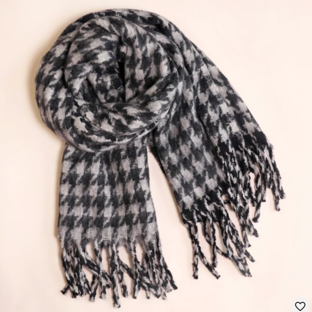 Prepare to welcome the cold weather in style with this charming oversized scarf in a houndstooth pattern.