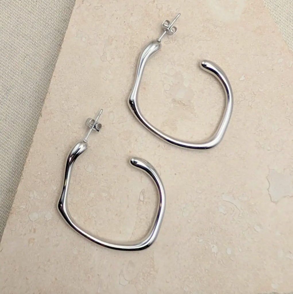 Previous NextA twist on a classic shape - our Silver Molten Hoops are a great addition to any jewellery box. Part of our Everyday range meaning they're waterproof, hypoallergenic, hard-wearing and won't fade or tarnish. Set with a post and butterfly back fixture.