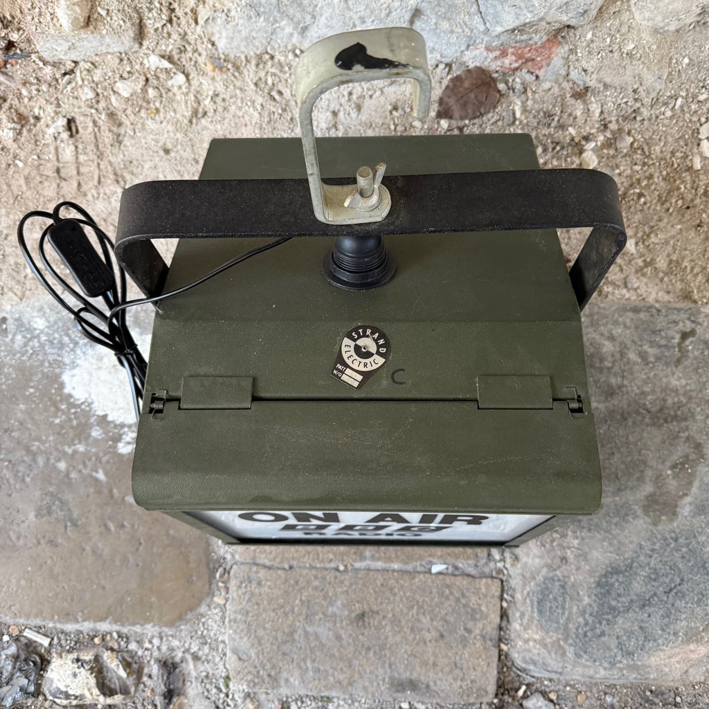 Recording on Air BBC Radio Lightbox in metal casing with carrying handle and hook