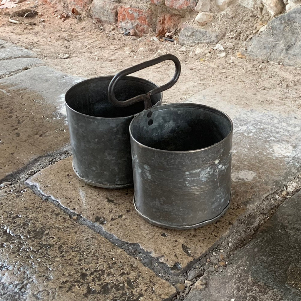 Small Double Galvanized Planter with carry handle.