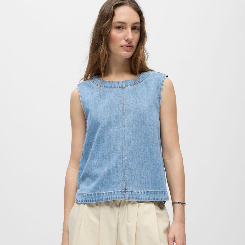Object Rosie Sleeveless Denim Top - Light Blue