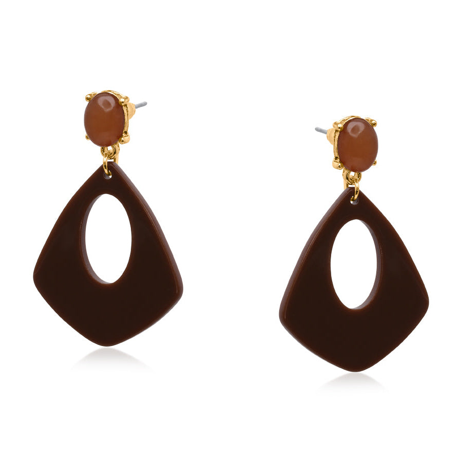 Each pair is handmade from resin sourced from recycled eyewear off-cuts, giving unique character to every piece. Lightweight and easy to wear, these earrings are finished with hypoallergenic surgical steel posts for all-day comfort.