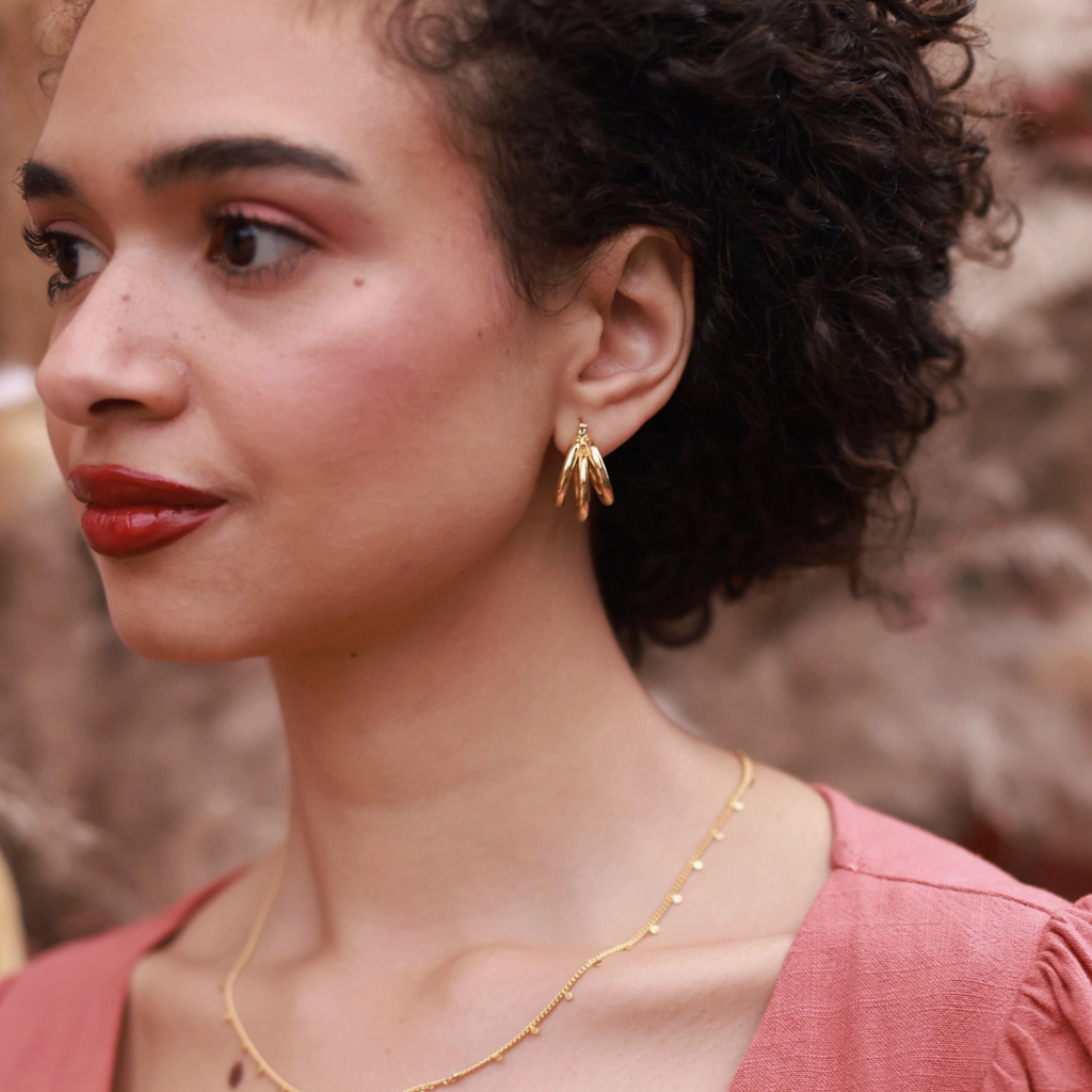 Stylish essential for a vintage cool vibe. 14k gold plated brass with surgical steel ear wires.