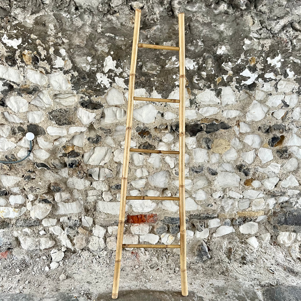 A bamboo display ladder that combines natural elegance with functional versatility. Standing at 150cm high with a 36cm width and 4cm depth, this piece serves as both a striking decorative accent and a practical storage solution for blankets, towels, or styled home accessories. The warm, organic tones of bamboo complement contemporary and traditional interiors alike, while its slender profile makes it ideal for corners, entryways, or bedroom spaces where visual impact matters without consuming floor area.