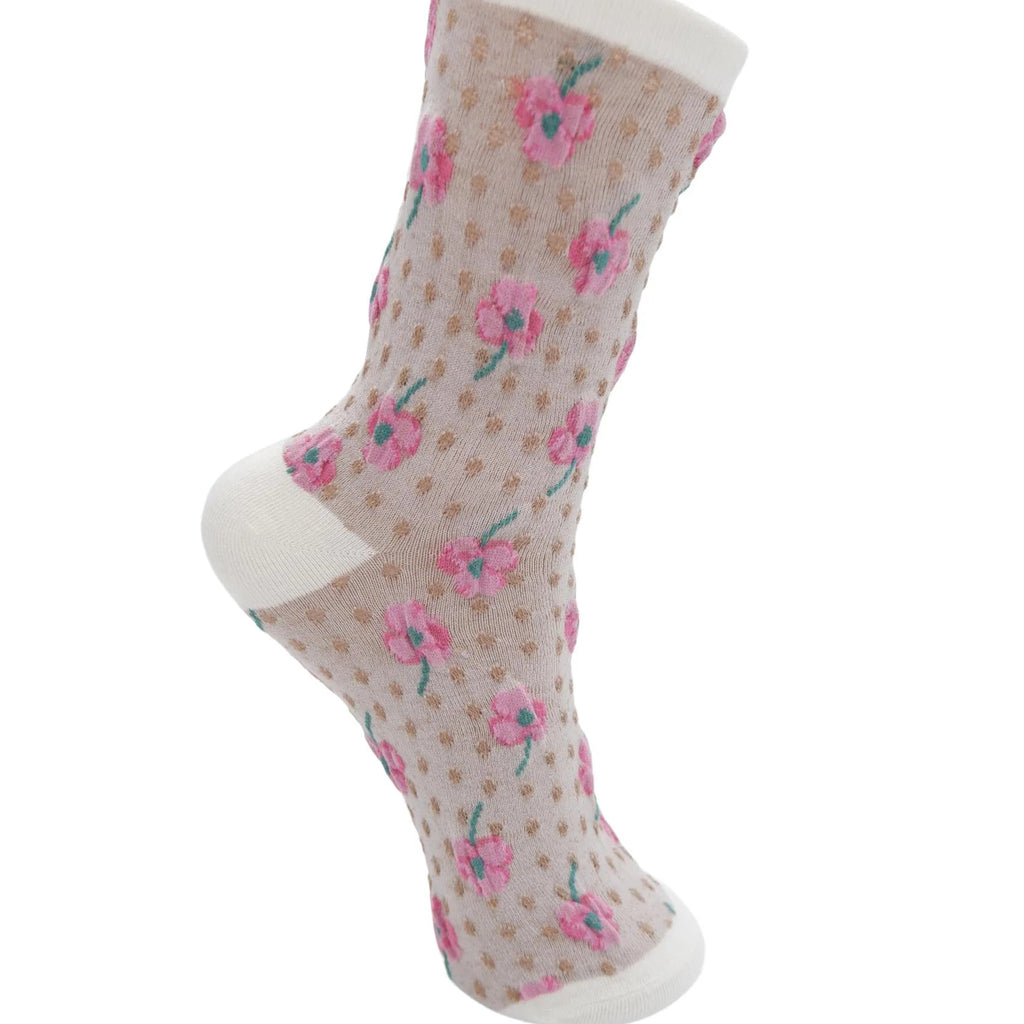 These socks are designed with delicate flowers combined with discreet dots, giving a feminine and playful look.