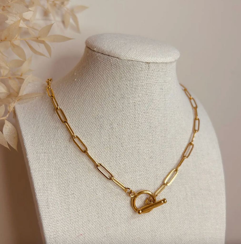 A timeless design that never goes out of style. The classic bar clasp chain. * Polished gold plated finish, that won’t fade or tarnish * Chain is 42cm * Hypoallergenic, hard-wearing steel base for sensitive skin * Water resistant, whilst we don’t recommend wearing any jewellery in water, this item will not discolour from contact with liquid.