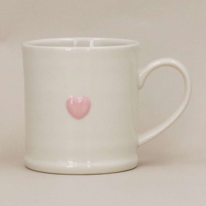 - A lovely mini mug with an embossed pink heart design