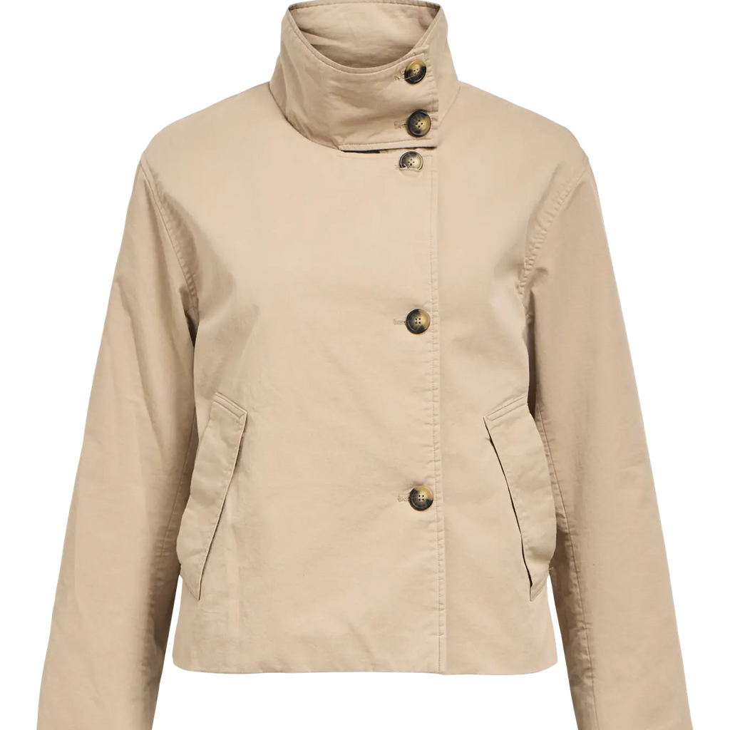 Effortlessly transition between seasons with the Object Gro Short Jacket. Layer it casually over your shoulders for understated style, or button up for warmth when temperatures dip. Crafted from durable woven fabric with a structured feel, this piece works equally well in the office or at weekend gatherings. The high stand-up collar and wide long sleeves create a contemporary silhouette, while side pockets and full lining add practical polish. A versatile wardrobe essential that moves seamlessly from day to night.