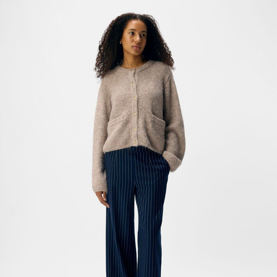 - Knitted cardigan - Round neck - Dropped shoulders - Long sleeves - Button-up front - Front pockets - Ribbed trims - Regular fit