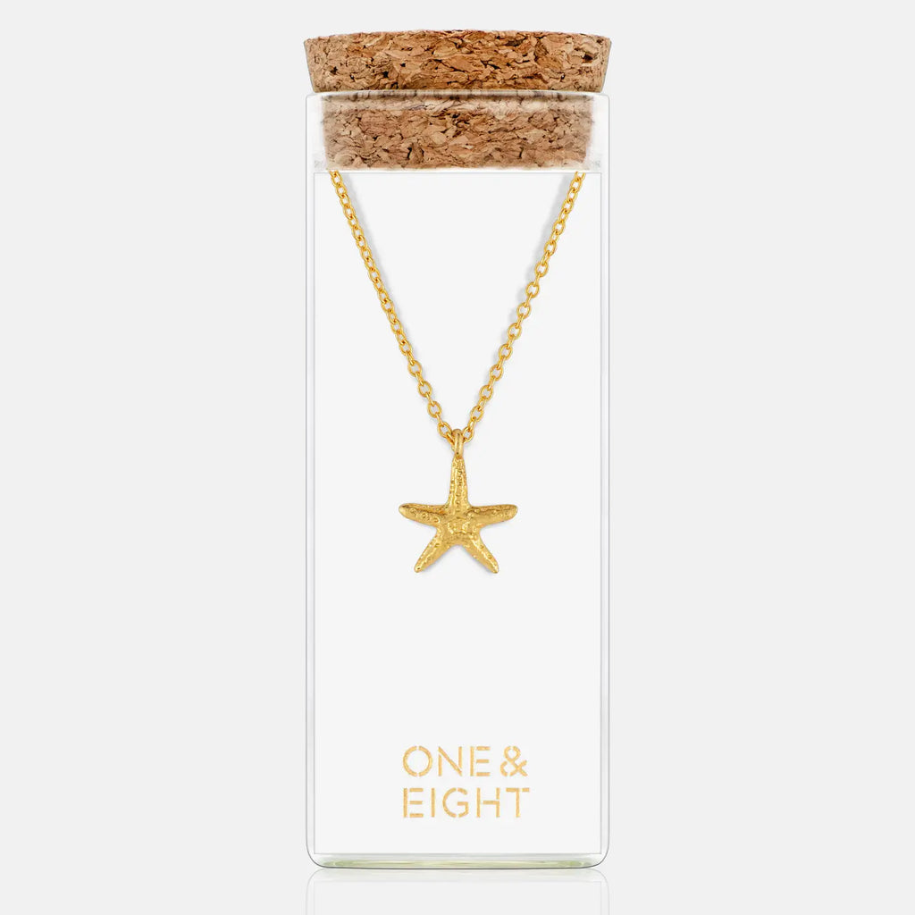 Discover the One & Eight Gold Starfish Necklace—a coastal-inspired piece that brings effortless beachy elegance to any look.