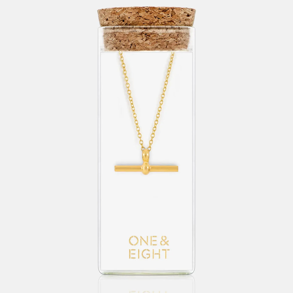 Elevate your everyday elegance with the One & Eight Gold T-Bar Necklace—a timeless piece that brings refined sophistication to any outfit.