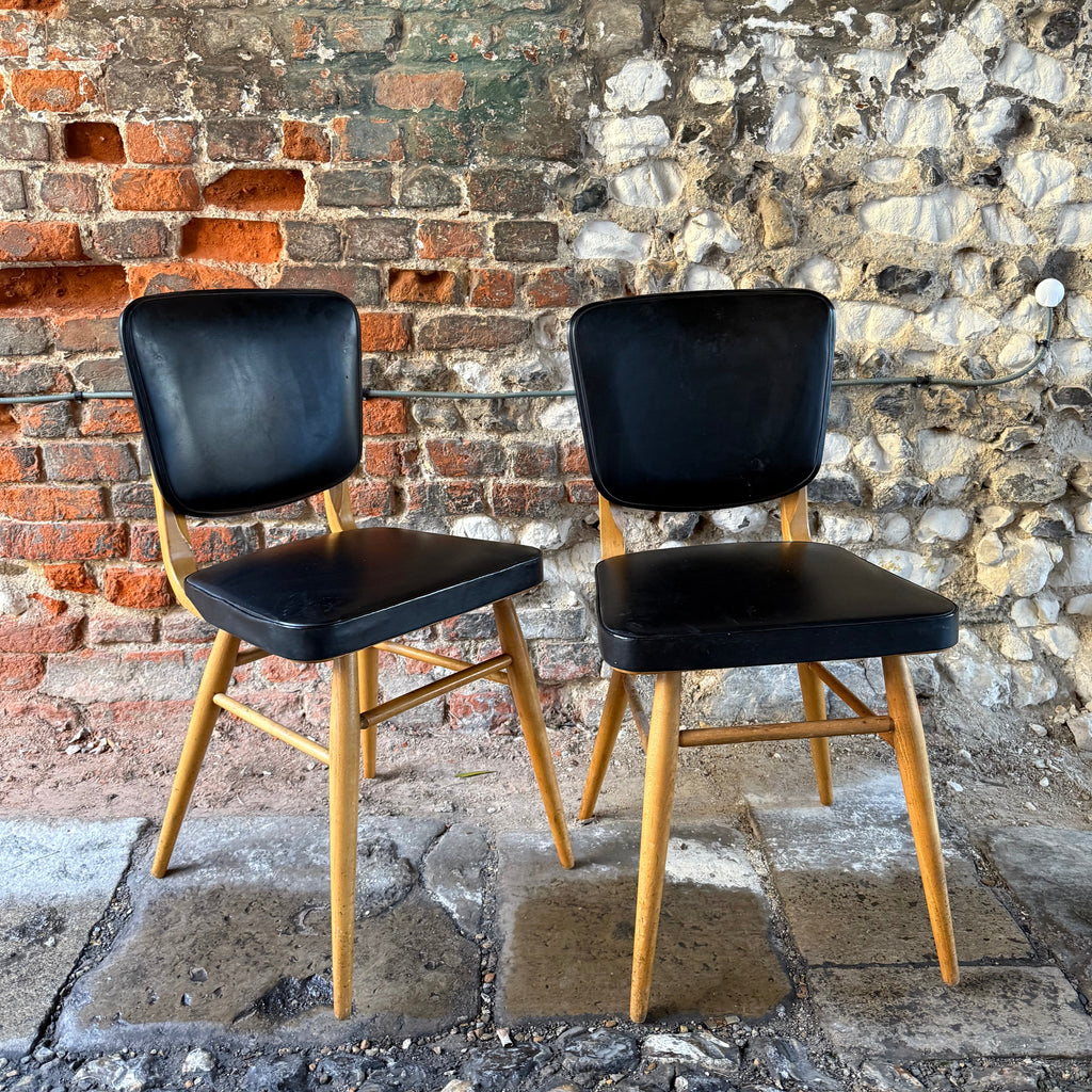 Enhance your dining space with this stylish pair of mid-century dining chairs. Featuring classic 1950s-60s design with clean lines and period-appropriate styling, these chairs bring authentic retro charm to your home.
